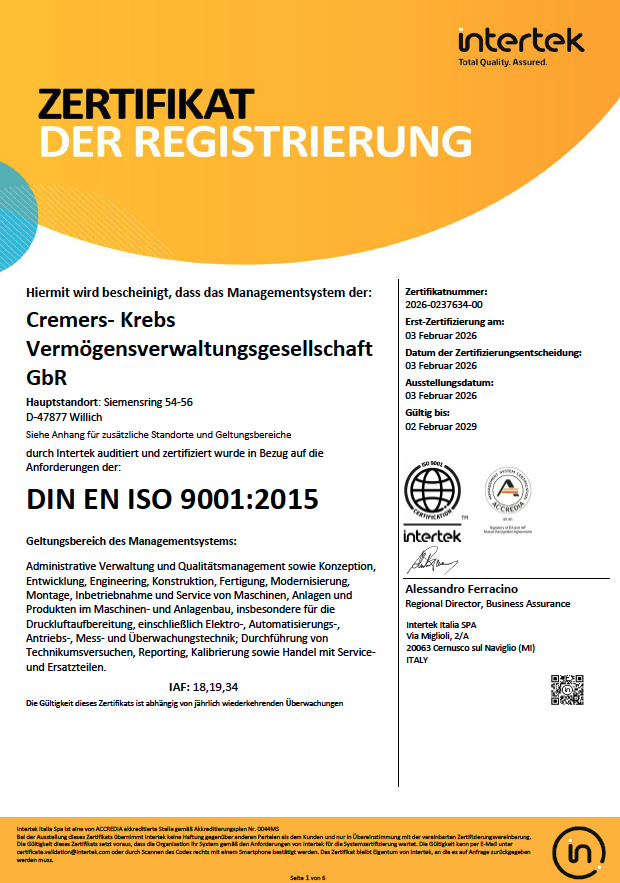 Hauptzertifikat DIN EN ISO 9001